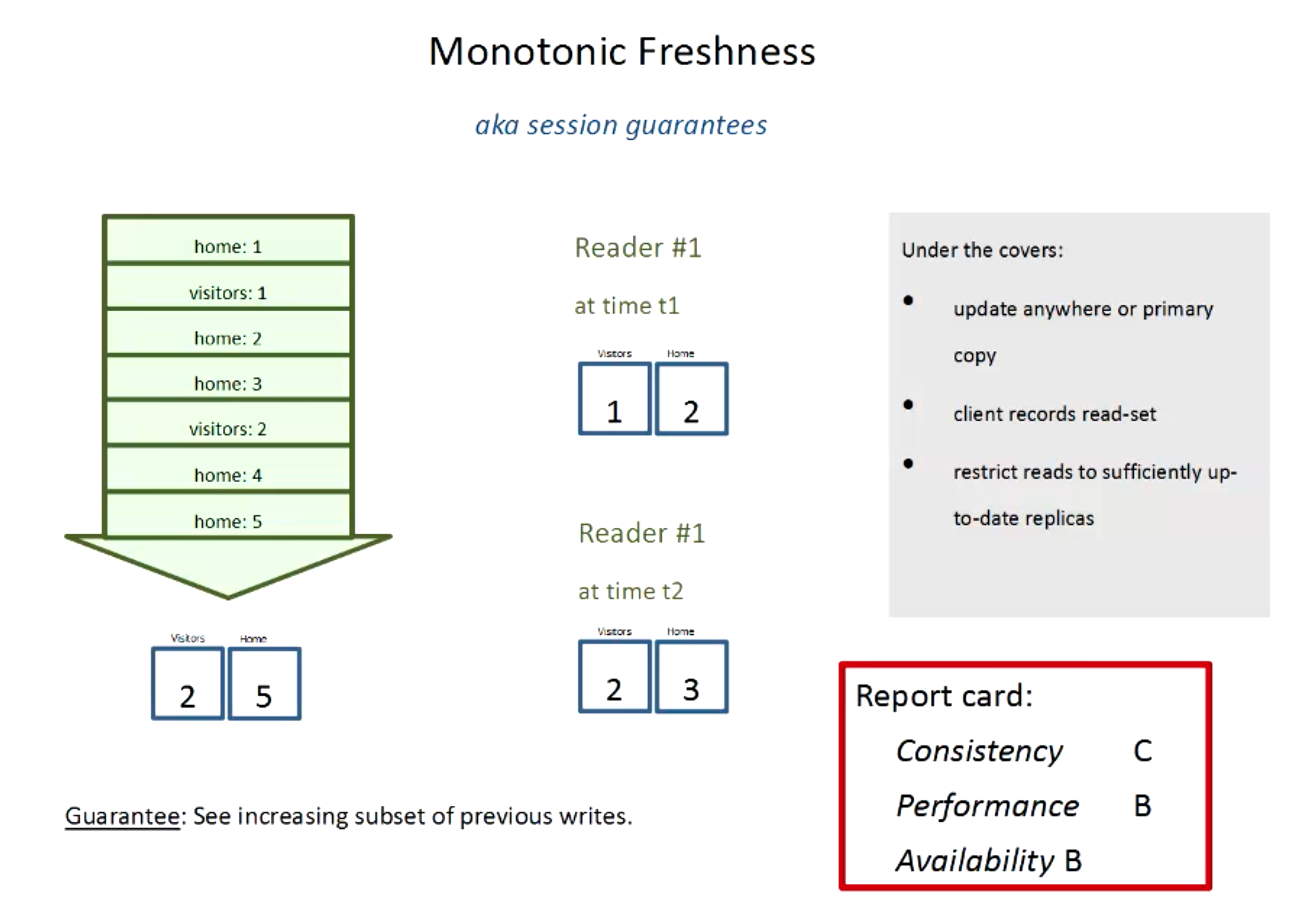 "monotonic reads" + "consistent prefix" or "monotonic reads" + "bounded staleness"