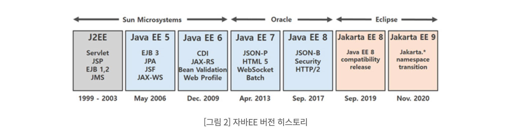 2017년에 자바EE 8을 마지막으로 비영리 단체 이클립스 재단에 자바EE 프로젝트를 이관