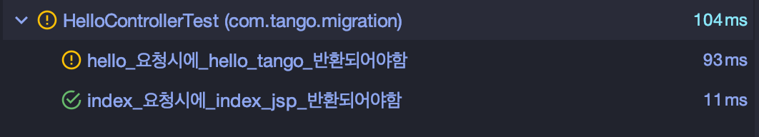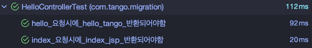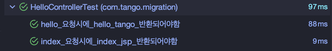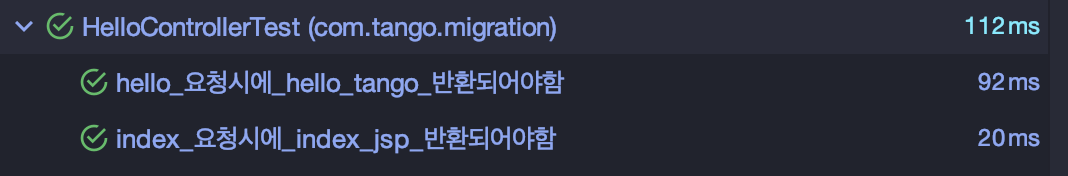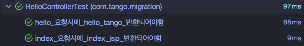 테스트를 돌려보면 'hello tango' 프로퍼티 값이 정상적으로 반환됨을 확인할 수 있습니다.
